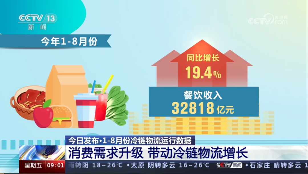 今年1一8月份,餐飲收入達到32818億元,同比增長19.4%。其中,8月份餐飲收入為4212億元,同比增長12.4%。從季節(jié)因素來看,7一8月份是冷鏈物流的傳統(tǒng)旺季,冰品、低溫飲品等冷鏈需求旺盛。另外,暑期旅游、餐飲、住宿等消費需求回升明顯,帶動快消品和生鮮食品等品類的電商物流需求快速增長。
