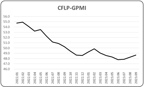 2023年9月份,美洲制造業PMI為48.9%,較上月上升1個百分點,連續3個月環比上升,但仍在50%以下,顯示美洲制造業自三季度以來呈現持續恢復走勢,但恢復力度相對偏弱。主要國家數據顯示,美國制造業PMI環比升幅較為明顯,是美洲制造業PMI上升的主要拉動力量;巴西、加拿大和墨西哥制造業PMI較上月均有不同程度下降。