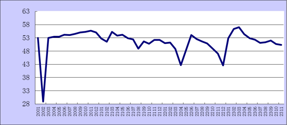 2023年11月份綜合PMI產出指數為50.4%