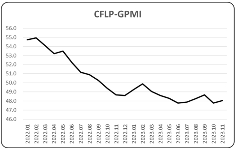 2023年11月份,美洲制造業PMI為47.2%,與上月持平,連續13個月低于50%,顯示美洲制造業維持弱勢,較上月變化不大。主要國家數據顯示,墨西哥、巴西和哥倫比亞制造業PMI較上月有不同程度上升;加拿大制造業PMI較上月有所下降;美國制造業PMI與上月持平。