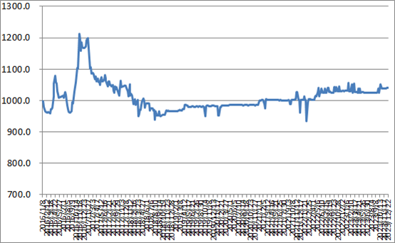 本周(2023年12月18日-12月22日),由中國物流與采購聯合會和林安物流集團聯合調查的中國公路物流運價指數為1039.96點,比上周回落0.02%。