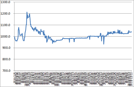 本周(2023年12月25日-12月29日),由中國物流與采購聯合會和林安物流集團聯合調查的中國公路物流運價指數為1040點,與上周基本持平。