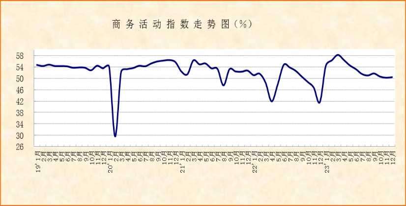 中國物流與采購聯合會、國家統計局服務業調查中心發布的2023年12月份中國非制造業商務活動指數為50.4%,較上月上升0.2個百分點,四季度以來,連續3個月穩定在50%以上;新訂單指數為47.5%,較上月上升0.3個百分點,連續2個月環比上升,顯示四季度非制造業經營活動保持小幅增長態勢,需求呈現持續恢復趨勢。結合分項指數和行業指數變化來看,四季度,伴隨著非制造業的穩步恢復,經濟內生增長動能正在積聚。主要表現在銷售價格與就業活動有趨穩跡象,企業預期持續向好,年底投資需求加速釋放跡象顯現,金融支持實體經濟力度進一步增強。