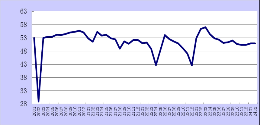 2024年2月份綜合PMI產出指數為50.9%