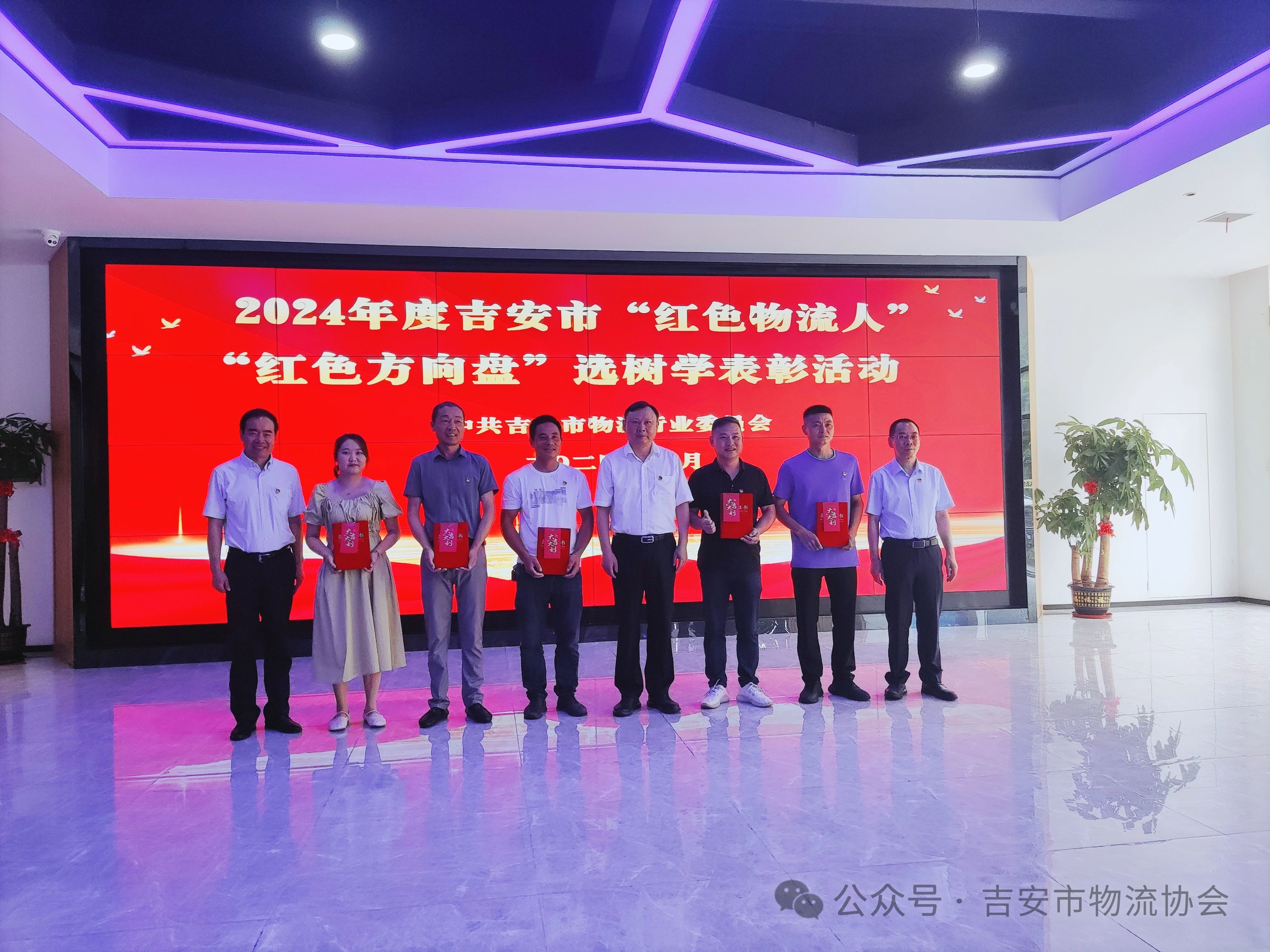 何黎明一行還赴江西萬佶物流、京鼎冷鏈、華通物流園等企業(yè)進(jìn)行座談?wù){(diào)研。并在江西萬佶物流大數(shù)據(jù)中心對榮獲2024年度吉安市“紅色物流人”和“紅色方向盤”榮譽(yù)稱號的13位同志進(jìn)行表彰,何黎明親自為獲獎?wù)哳C發(fā)了榮譽(yù)證書。