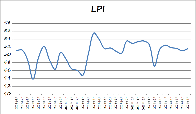 中國物流與采購聯合會發布的2024年8月份中國物流業景氣指數為51.5%,環比回升0.5個百分點,繼續處于擴張區間。8月份隨著促投資、穩增長各項政策逐步落實和部分地區極端天氣影響減弱,產業鏈、供應鏈上下游聯動加速,物流業務總量和新訂單業務量增速加快,東中西部地區均衡增長;同時,數據反映出企業微觀活力改善,盈利改觀,預期回升。