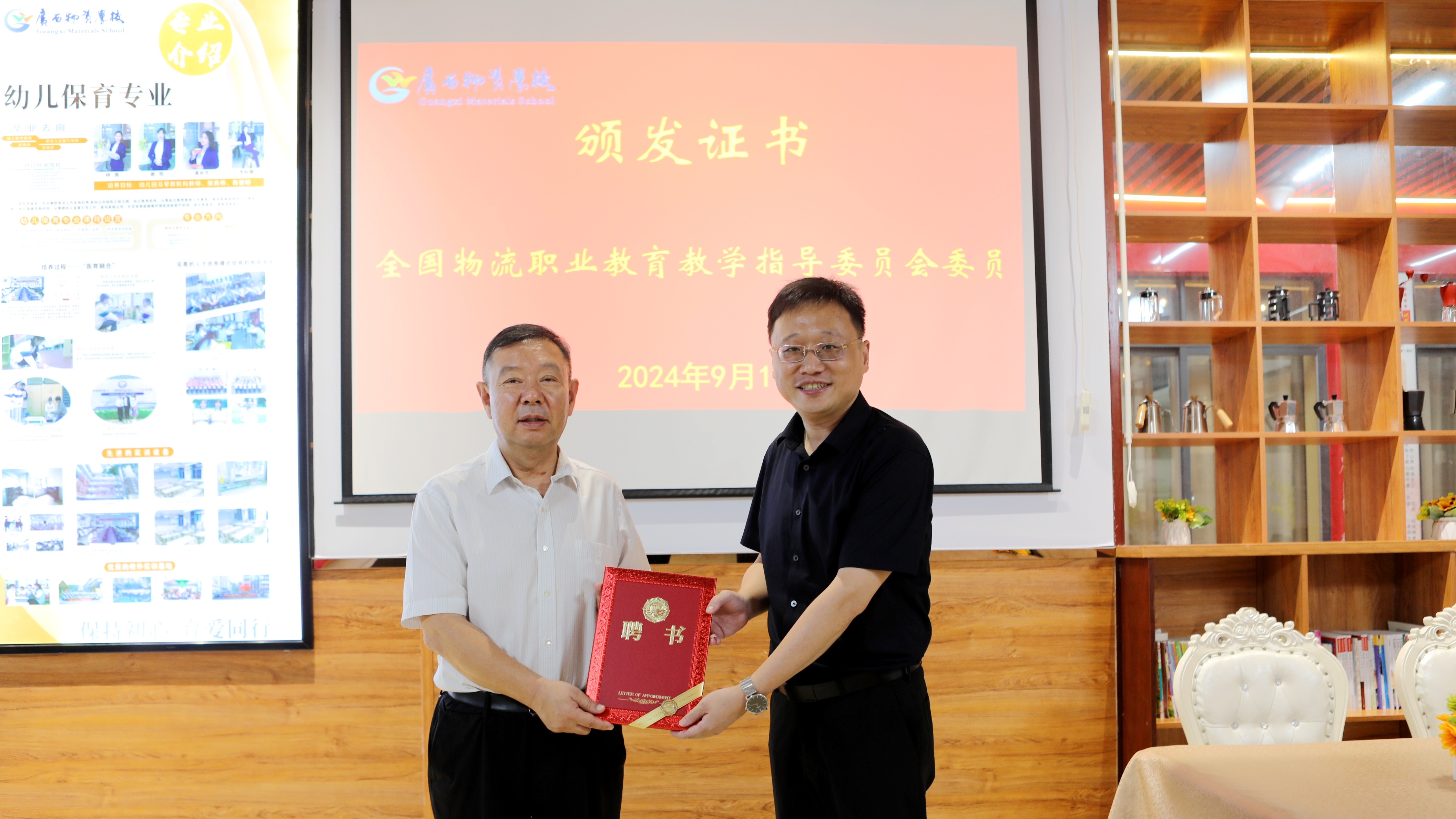 在廣西物資學校,廣西物資集團副總經(jīng)理羅園,廣西物流與采購聯(lián)合會副會長張華,廣西物資學校黨委書記盧俊林、校長陳剛陪同任豪祥參觀技能大師工作室、實訓基地并進行座談。