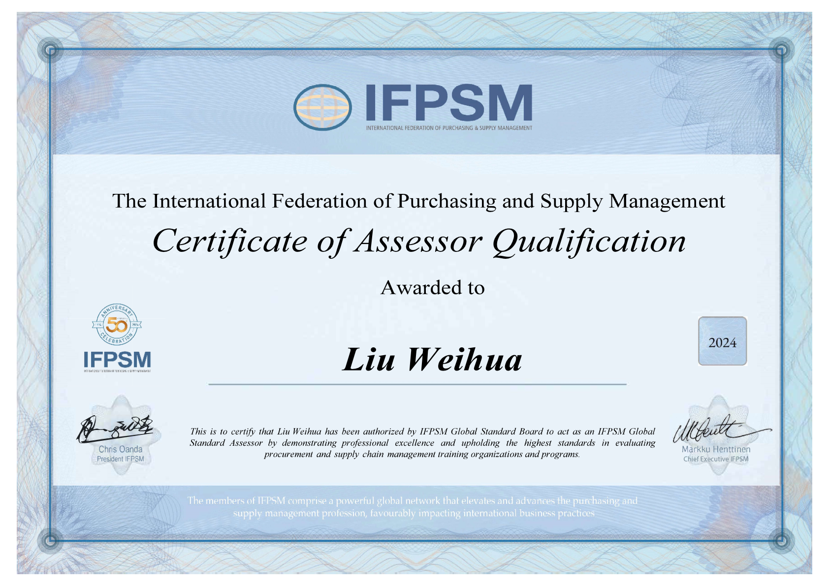 2021年,中國(guó)物流與采購(gòu)聯(lián)合會(huì)首次向IFPSM推薦張旭鳳擔(dān)任全球標(biāo)準(zhǔn)認(rèn)證項(xiàng)目的評(píng)審專(zhuān)家,經(jīng)IFPSM董事會(huì)資格審查和培訓(xùn),張旭鳳成為IFPSM首位中國(guó)評(píng)審專(zhuān)家。之后張旭鳳在聘期內(nèi)承擔(dān)了多個(gè)IFPSM GS認(rèn)證項(xiàng)目的評(píng)審,相關(guān)工作得到IFPSM的高度認(rèn)可。