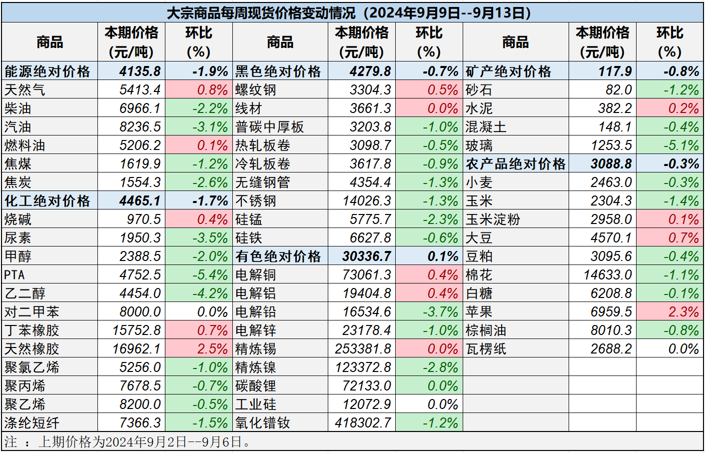 - 中國(guó)重要大宗商品市場(chǎng)價(jià)格變動(dòng)情況周報(bào) (240902--240906)