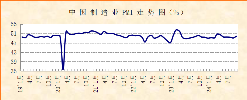 中國物流與采購聯合會、國家統計局服務業調查中心發布的2024年9月份中國制造業采購經理指數(PMI)為49.8%,較上月上升0.7個百分點。指數穩定在49%以上的水平,較上月明顯上升。分項指數變化顯示,市場供需同步回升,四大行業指數協同上升,大中小企業均有改善。綜合來看,當前經濟中的積極因素積聚,經濟運行向好。