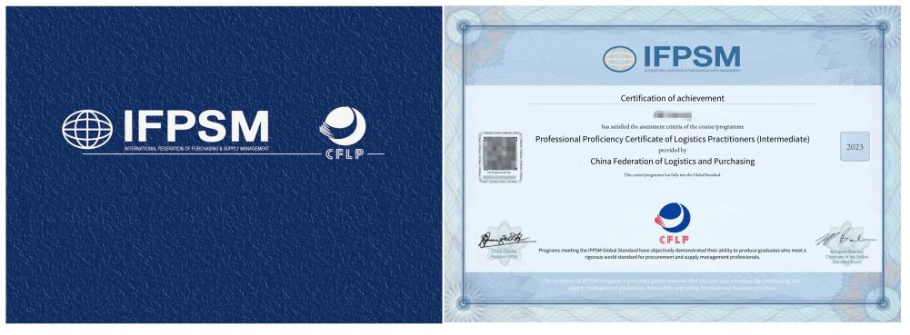 獲得由中物聯頒發的職業能力等級認證任意級別證書可申領由國際采購與供應管理聯盟(IFPSM)頒發的采購與供應全球標準認證證書。該證書在全球44個國家和地區得到認可。