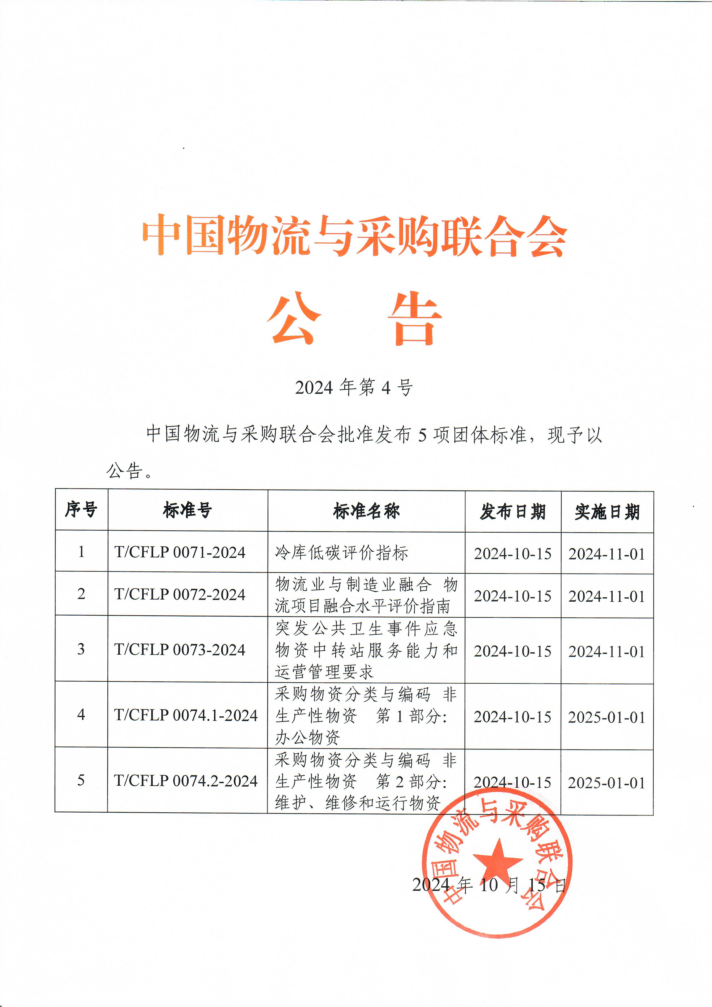 中物聯2024年第4號公告 《冷庫低碳評價指標》等團體標準發布
