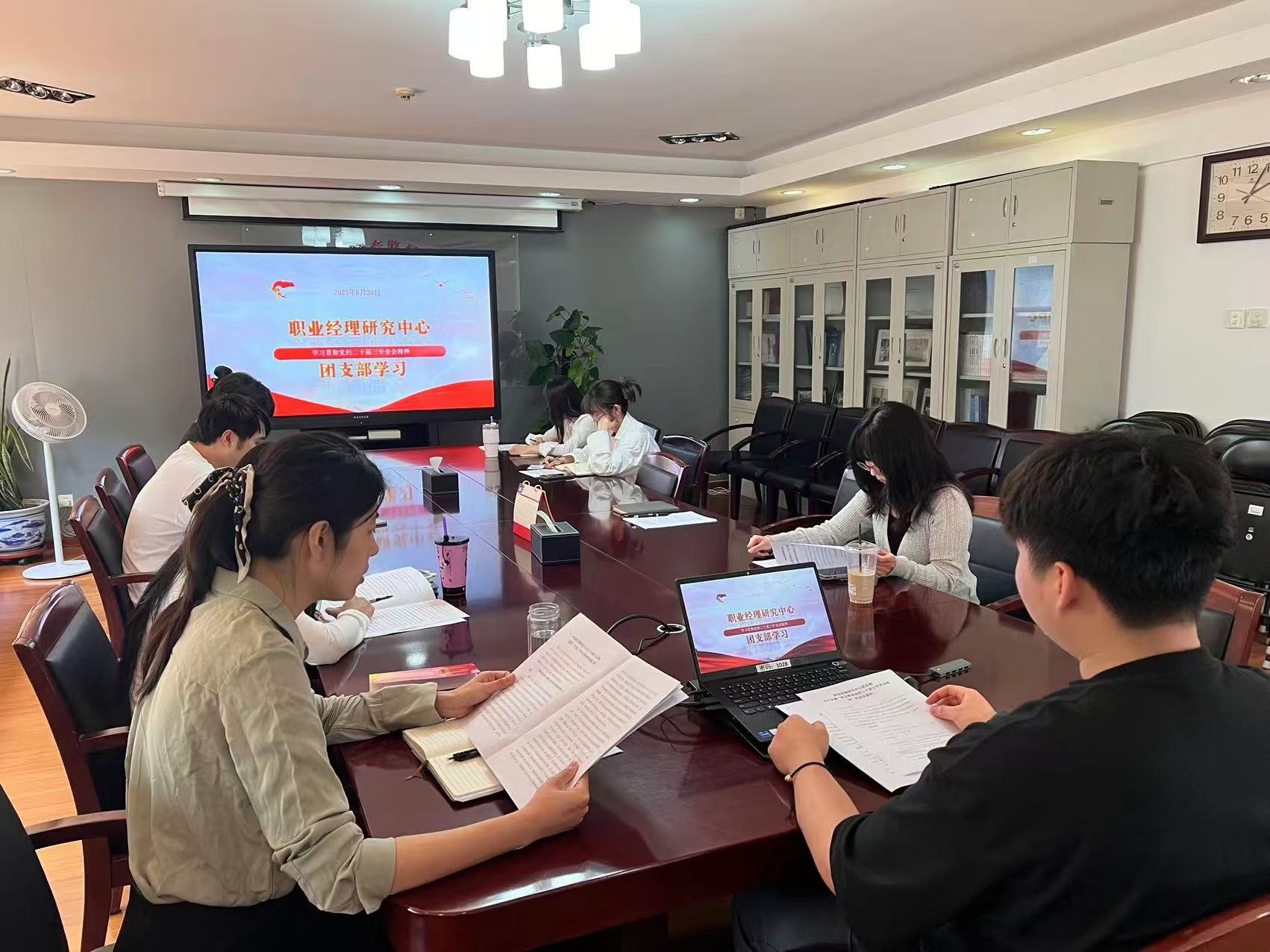 8月30日,職業經理研究中心團支部組織青年團員開展二十屆三中全會精神集體學習,引導中心團員認真學習領會全會精神,把學習宣傳貫徹全會精神作為當前和今后一個時期的重要政治任務,切實把思想和行動統一到黨中央決策部署上來,做到學習跟進、認識跟進、行動跟進。