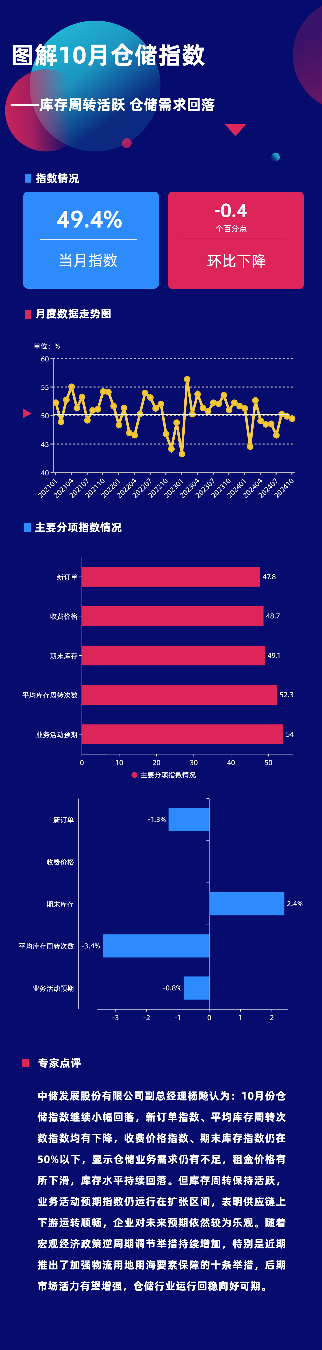 圖解10月份倉儲指數——庫存周轉活躍 倉儲需求回落