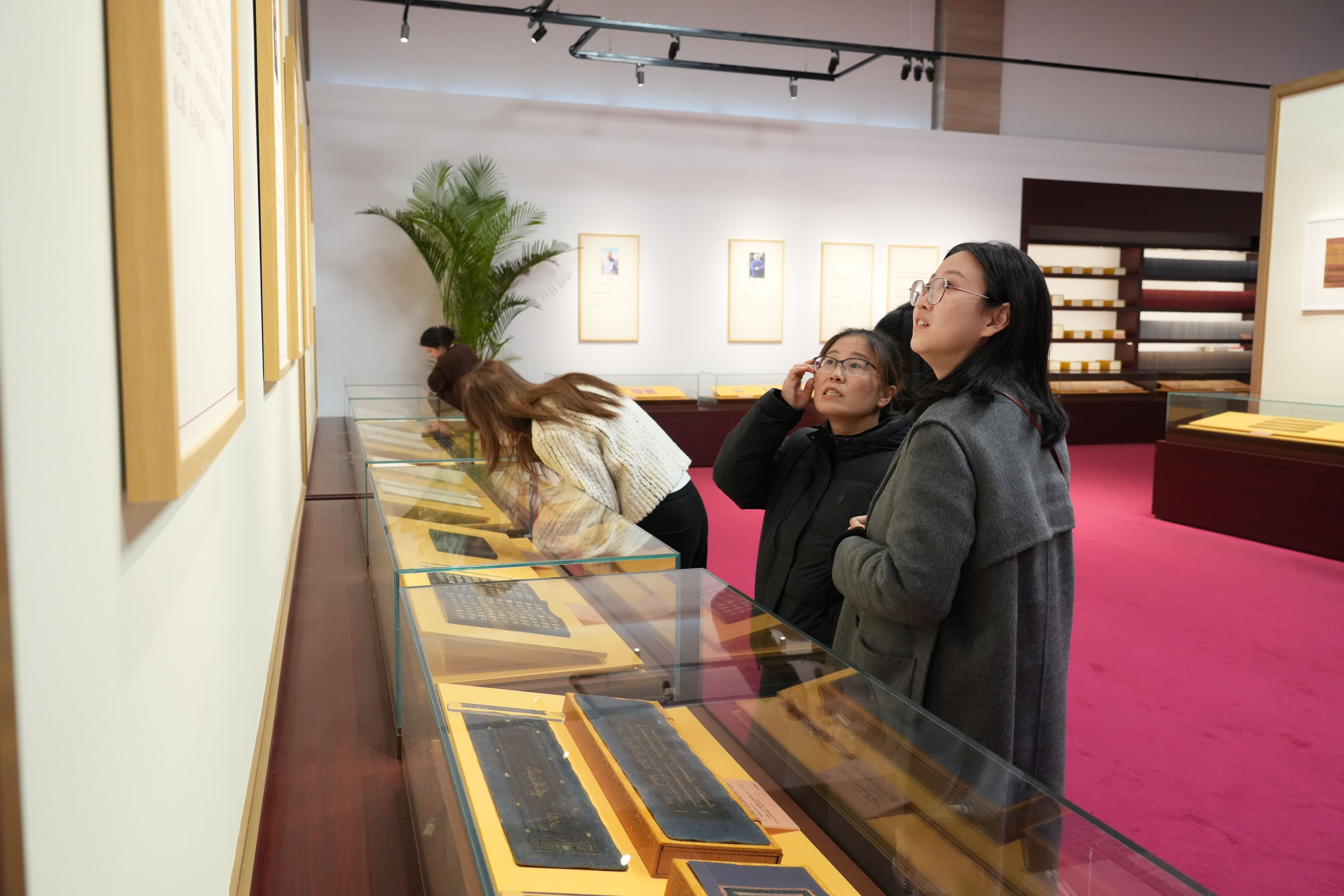 此次主題參觀活動,從國家版本館建筑群的門廳——文興樓,到主建筑——文華堂,參觀了“斯文在茲——中華古代文明版本展”,再到陳列著珍貴的古籍出版物的文瀚閣,參觀了“真理之光——馬克思主義中國化時代化經典版本展”。從不同角度了解了豐富厚重的中華文明遺產,了解了新中國成立以來各類出版物版本以及中華古籍、雕版拓片、碑帖家譜、錢幣郵票、數字版本等承載中華文明印記的各類資源寶藏。