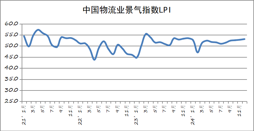 中國物流與采購聯合會發布的2024年12月份中國物流業景氣指數為53.1%,環比上升0.3個百分點;中國倉儲指數為50.6%,環比回落1.8個百分點。
