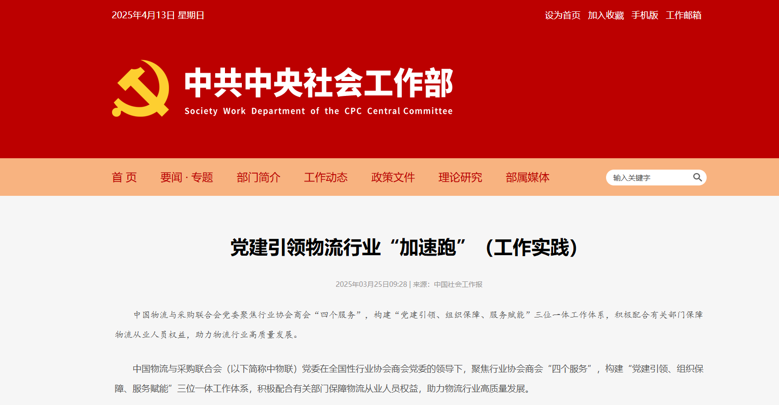 【編者按】《黨建引領物流行業“加速跑”(工作實踐)》在中國社會工作報刊發、中央社會工作部官網發布,現全文轉載如下: