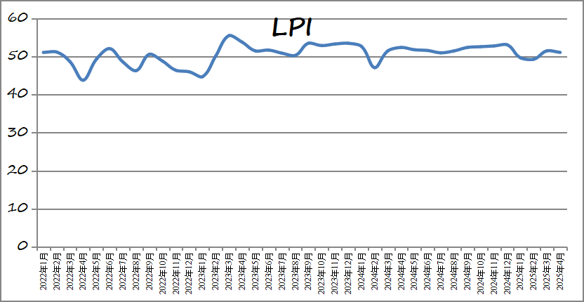 中國物流與采購聯(lián)合會(huì)發(fā)布的2025年4月份中國物流業(yè)景氣指數(shù)(LPI)為51.1%,環(huán)比回落0.4個(gè)百分點(diǎn)。其中,業(yè)務(wù)總量指數(shù)、新訂單指數(shù)、庫存周轉(zhuǎn)次數(shù)指數(shù)、資金周轉(zhuǎn)率指數(shù)、固定資產(chǎn)投資完成額指數(shù)、從業(yè)人員指數(shù)和業(yè)務(wù)活動(dòng)預(yù)期指數(shù)保持在50%以上擴(kuò)張區(qū)間。