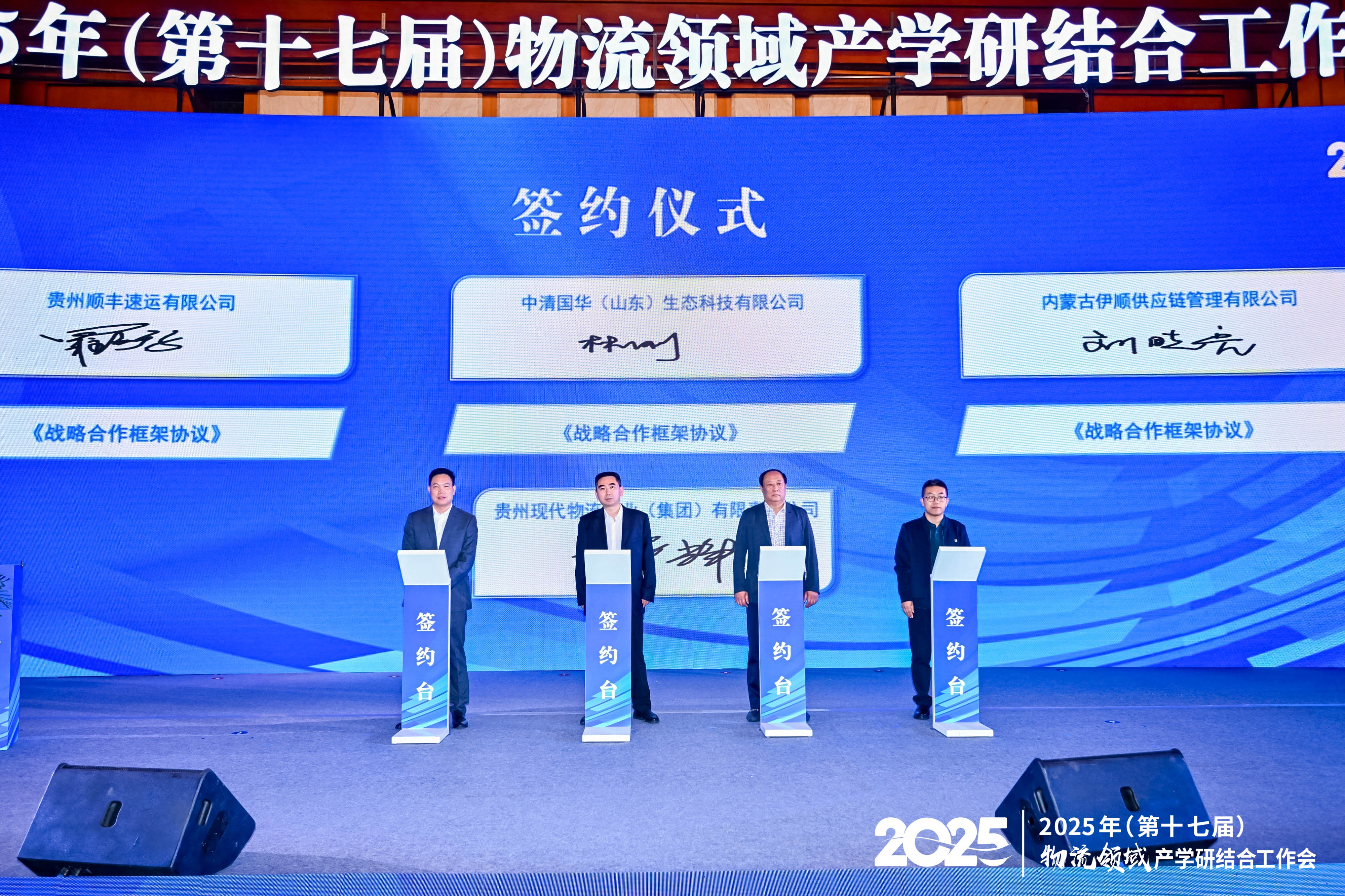 2025年5月9-11日,由中國物流學會、中國物流與采購聯合會主辦,貴州現代物流產業集團承辦的2025年(第十七屆)物流領域產學研結合工作會在貴州貴陽召開。中國物流與采購聯合會黨委常委、中國物流學會會長任豪祥,貴州省發展和改革委員會黨組書記、主任邱禎國,貴陽市委常委、市政府黨組副書記、副市長范輝政出席會議并致辭。中國物流與采購聯合會副會長、中國物流學會副會長楊國棟,中國物流與采購聯合會總會計師鄭小寶,中國物流學會副會長兼秘書長郭肇明,中國物流與采購聯合會專家委員會主任、中國物流學會專家委員會主任賀登才參加會議。來自全國29個省區市物流領域政產學研各界領導、專家、學者、企業家及院校、研究機構代表800余人參加會議。會議開幕式分別由郭肇明、楊國棟主持。