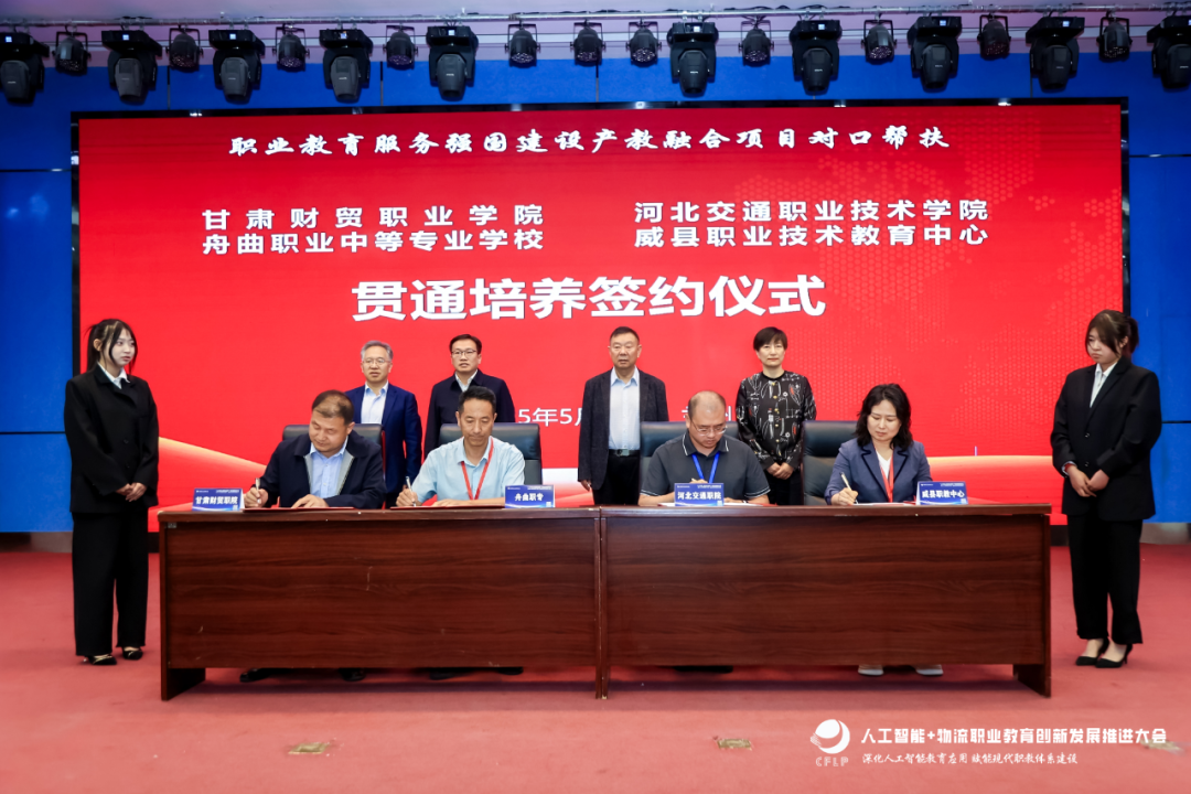 會議啟動了“人工智能+物流職業教育”行動計劃和職業教育服務強國建設產教融合項目-“物流+電商+雙創”復合型高技能人才培養項目,并公布了第一批“人工智能+物流職業教育”試點名單。同時,甘肅財貿職業學院、舟曲職業中等專業學校、河北交通職業技術學院、威縣職業技術教育中心在會議上進行了“物流+電商+雙創”中高職貫通培養項目簽約儀式。大會邀請了行業、企業與院校代表圍繞“人工智能背景下物流產業發展與專業轉型升級”進行主旨演講與深入交流。