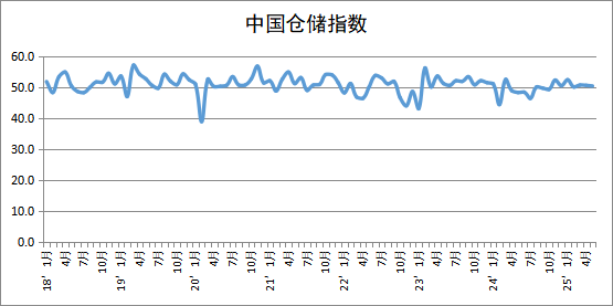 中國物流與采購聯合會發布的2025年5月份中國物流景氣指數為50.6%,較上月回落0.5個百分點;中國倉儲指數為50.5%,較上月回落0.2個百分點。