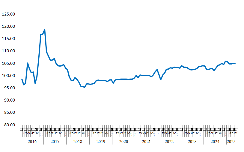 2025年5月份,由中國物流與采購聯(lián)合會和林安物流集團聯(lián)合調(diào)查的中國公路物流運價指數(shù)為105點,環(huán)比回升0.06%,同比去年回升2.02%。從月內(nèi)看,第一、四周運價指數(shù)環(huán)比有所回落,第二、三、五周運價指數(shù)環(huán)比有所回升。