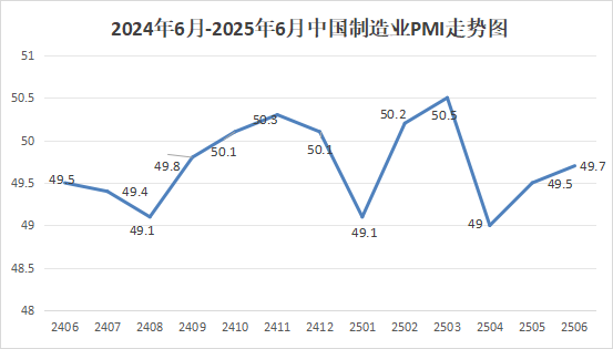 中國物流與采購聯合會、國家統計局服務業調查中心發布的2025年6月份中國制造業采購經理指數(PMI)為49.7%,比上月上升0.2個百分點。