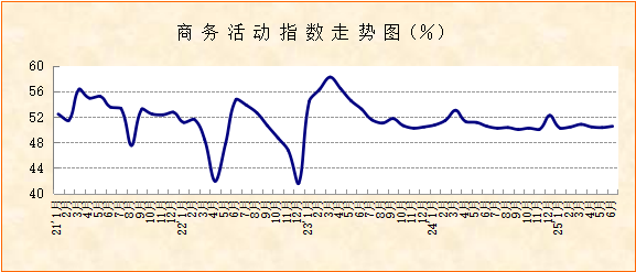 中國物流與采購聯合會、國家統計局服務業調查中心發布的2025年6月份中國非制造業商務活動指數為50.5%,較上月上升0.2個百分點,今年以來持續在50%以上,二季度商務活動指數均值為50.4%,與一季度的50.5%變化不大,顯示上半年非制造業經營活動保持平穩擴張。新訂單指數為46.6%,較上月上升0.5個百分點,連續2個月環比上升,顯示需求側降幅繼續收窄,持續恢復跡象有所顯現。