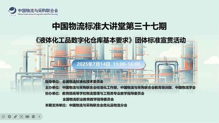 - 中國物流標(biāo)準(zhǔn)大講堂第37期:《液體化工品數(shù)字化倉庫基本要求》團體標(biāo)準(zhǔn)宣貫