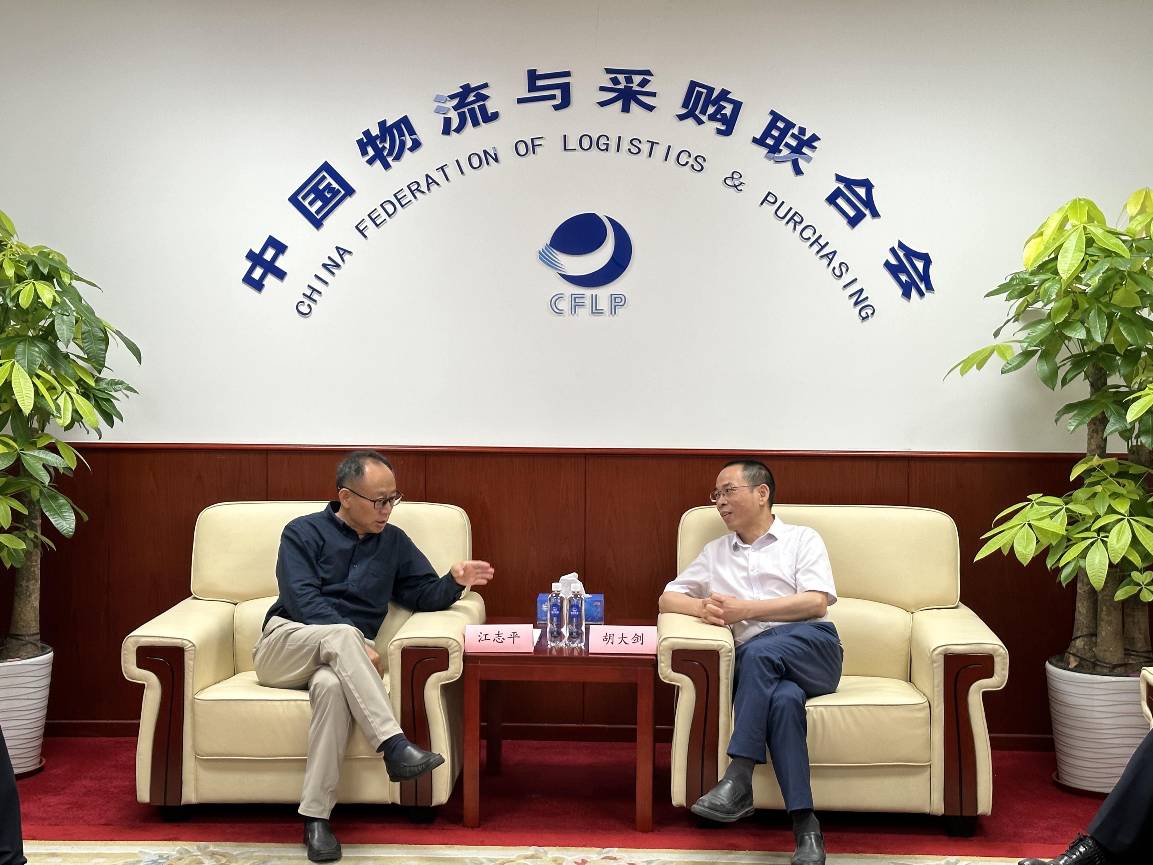 2025年7月15日,江蘇省現代供應鏈協會常務副會長江志平一行來訪中國物流與采購聯合會,中國物流與采購聯合會副會長胡大劍接待并進行座談交流。
