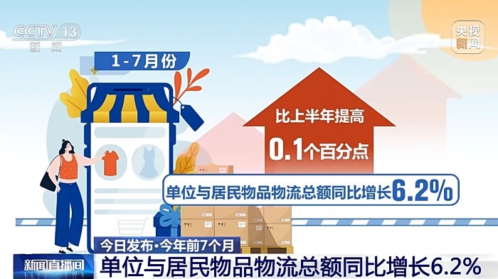 單位與居民物品物流需求穩(wěn)健增長(zhǎng)。1-7月份,單位與居民物品物流總額同比增長(zhǎng)6.2%,比上半年提高0.1個(gè)百分點(diǎn)。“以舊換新”政策帶動(dòng)家用電器和音像器材類、通信器材類物流需求快速增長(zhǎng)。