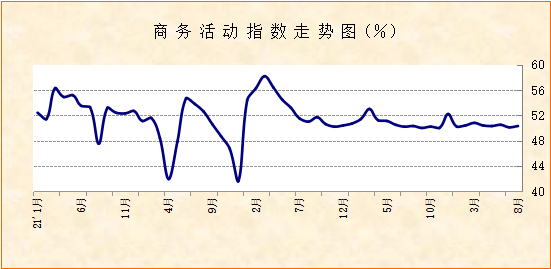 金融活動(dòng)保持?jǐn)U張,支持實(shí)體經(jīng)濟(jì)動(dòng)能較強(qiáng)。8月,貨幣金融服務(wù)業(yè)商務(wù)活動(dòng)指數(shù)和新訂單指數(shù)較上月均有不同程度上升,指數(shù)均在50%以上;資本市場(chǎng)服務(wù)業(yè)商務(wù)活動(dòng)指數(shù)和新訂單指數(shù)均在60%以上。指數(shù)變化顯示,金融相關(guān)行業(yè)活動(dòng)保持?jǐn)U張,銀行和資本市場(chǎng)服務(wù)業(yè)均有良好表現(xiàn),為支撐實(shí)體經(jīng)濟(jì)運(yùn)行,改善企業(yè)融資環(huán)境,提供了有力支撐。