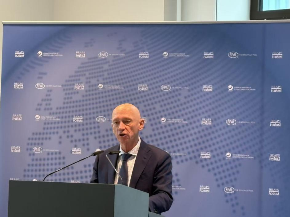 EPAL榮譽主席、中歐托盤共享行動BRAPS輪值主席Robert Holliger羅伯特·霍利格在致辭中表示,作為EPAL創立者之一,他早在1991年就投身于推動國際托盤標準的建立與發展。2021年,EPAL和CFLP共同發起BRAPS倡議,旨在通過跨國托盤共享實現互聯互通,加深物流領域合作,推動經濟一體化與可持續發展。