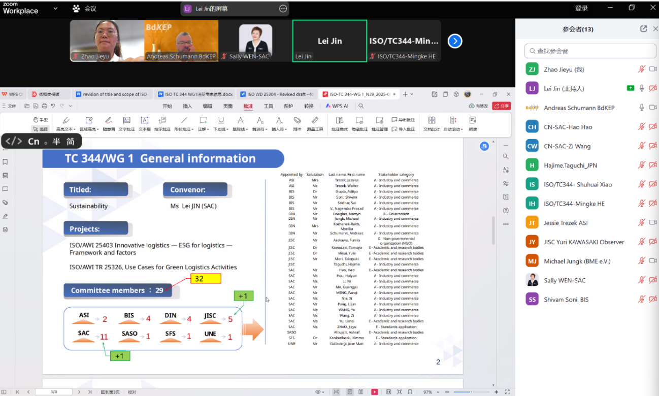 2025年9月26日,ISO/TC 344/WG1(國際標準化組織創新物流技術委員會可持續性工作組)第四次會議通過線上方式順利召開。