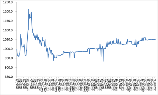 圖1 2016年以來各周中國公路物流運價指數(shù)