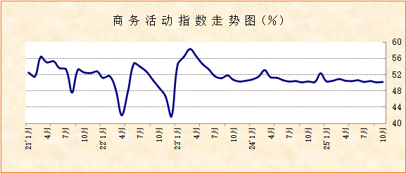 國家統計局服務業調查中心、中國物流與采購聯合會發布的2025年10月份中國非制造業商務活動指數為50.1%,較上月微幅上升0.1個百分點,今年以來持續保持在50%及以上的水平,新訂單指數雖仍在50%以下,但與上月持平,顯示非制造業經營活動繼續趨穩運行,需求側相對穩定。在供需相對穩定的帶動下,上下游價格有積極變化,投入品價格指數和銷售價格指數較上月均有小幅上升,分別升至49.4%和47.8%。細分指數變化顯示,節日消費帶動作用明顯,基礎建設投資相關活動有加速啟動跡象,企業樂觀預期有所升溫。