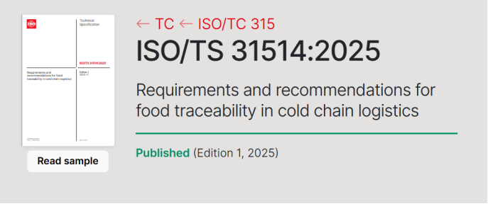 我國牽頭制定的ISO/TS 31514:2025 《冷鏈物流中食品可追溯性的要求和建議》正式發布