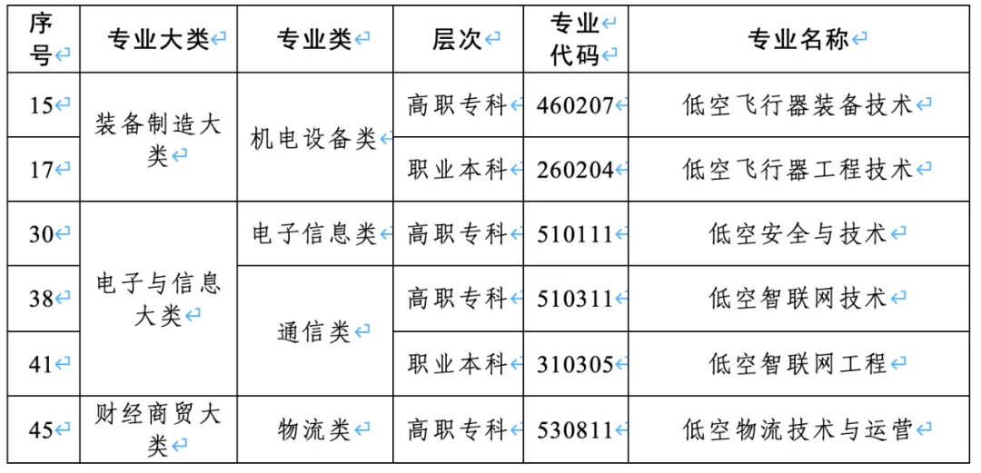 根據《教育部辦公廳關于做好2026年職業教育擬招生專業設置管理工作的通知》(教職成廳函〔2025〕27),57個中職、高職專科和職業本科新設專業進入《2025年職業教育專業目錄增補清單》,其中由中國物流與采購聯合會、全國物流職業教育教學指導委員會聯合多所院校共同申報的高職專科“低空物流技術與運營”正式獲批,“低空物流技術與運營”專業是6個新增低空相關專業中唯一一個財經商貿類專業,也是唯一一個基于應用場景的專業。