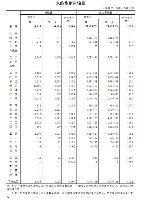 2015年1月水路貨物運(yùn)輸量