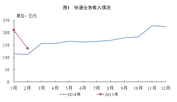 2月份,因春節假期因素,行業增速略有減緩。全行業業務收入完成246.8億元,同比增長17.9%;業務總量完成243.3億元,同比增長15.2%。