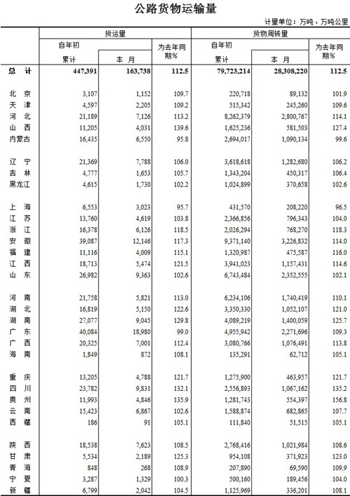 2015年2月公路貨物運輸量