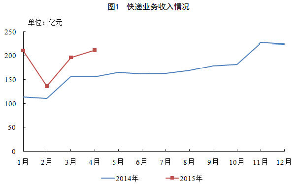 1-4月,郵政企業和全國快遞服務企業業務收入(不包括郵政儲蓄銀行直接營業收入)累計完成1205.4億元,同比增長23.4%;業務總量累計完成1357.1億元,同比增長29.1%。
