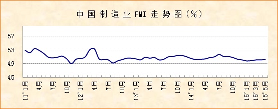 中國物流與采購聯合會、國家統計局服務業調查中心發布的2015年5月份中國制造業采購經理指數(PMI)為50.2%,較上月略升0.1個百分點,主要分項指數多呈小幅上升,尤其是新訂單和新出口訂單指數回升較為明顯,顯示穩增長政策效果逐漸顯現,市場需求趨于改善,生產形勢穩中有升,企業經營狀況整體良好,就業形勢基本穩定,經濟增長基礎趨于鞏固。