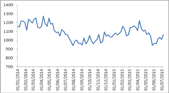 圖 1 2015年以來各周中國公路物流運價指數