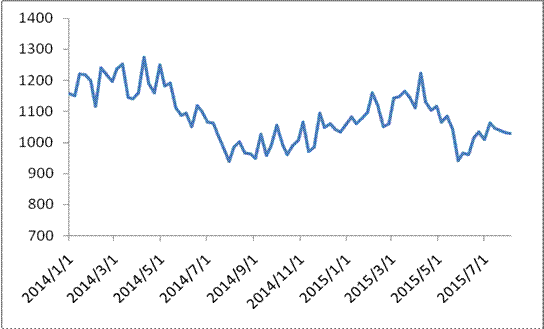 圖 1 2015年以來各周中國公路物流運價指數