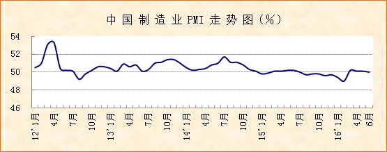 中國物流與采購聯合會、國家統計局服務業調查中心發布的2016年6月份中國制造業采購經理指數(PMI)為50.0%,較上月下降0.1個百分點。數據回落有一定的季節性,結合10多年的歷史數據來看,往年同期多有下降,今年降幅較小。細分指數顯示生產指數有所上升,傳統的產能過剩行業下降,但裝備制造業和高技術產業上升明顯,具有一定的積極變化。分行業來看,21個行業中13個行業PMI指數高于50%。總的來看,當前經濟運行的基本面沒有發生太大變化,基本平穩的大格局、大趨勢沒有發生明顯改變。