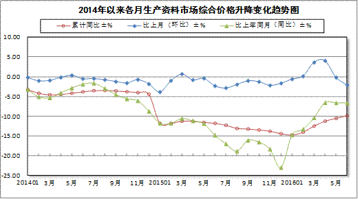 上半年,生產資料價格呈現上升趨勢,但這種上升是基于之前較大幅度回落的基礎之上。由于目前整體生產資料市場仍處于產能過剩的大背景下,需求增長速度不會出現明顯上升,因此預期今年生產資料市場價格回升幅度有限,整體水平不會高于 2015年。