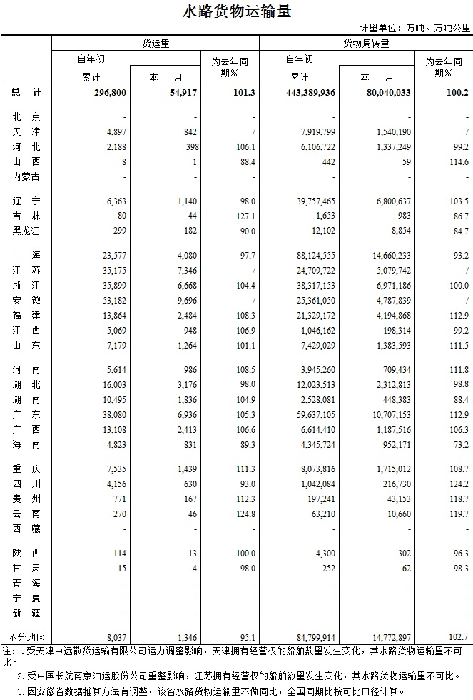 2016年6月水路貨物運輸量