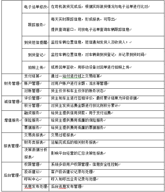 2) 依托互聯網和移動互聯應用,為中國公路運輸車、貨源搭建可靠、透明、對等的交易環境,幫助雙方的提高交易效率,降低交易成本,并提供從信用管理、在線交易、透明化運作跟蹤、在線結算等交易服務,同時圍繞用戶的剛性需求,整合社會優質資源,提供金融、保險、票據、油品等系列相關增值服務,提升用戶價值并打造盈利模式。