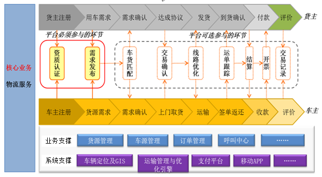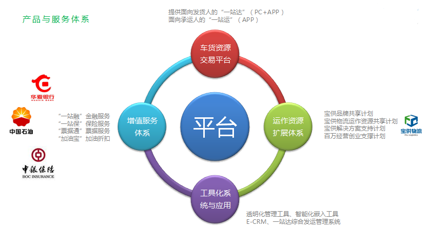 平臺通過整合優質運作資源,用互聯網重構公路運輸資源交易環節,從整車業務切入,逐步形成了覆蓋整車和零擔的一站物流資源交易平臺,并通過增值服務建立盈利模式和用戶強粘性。